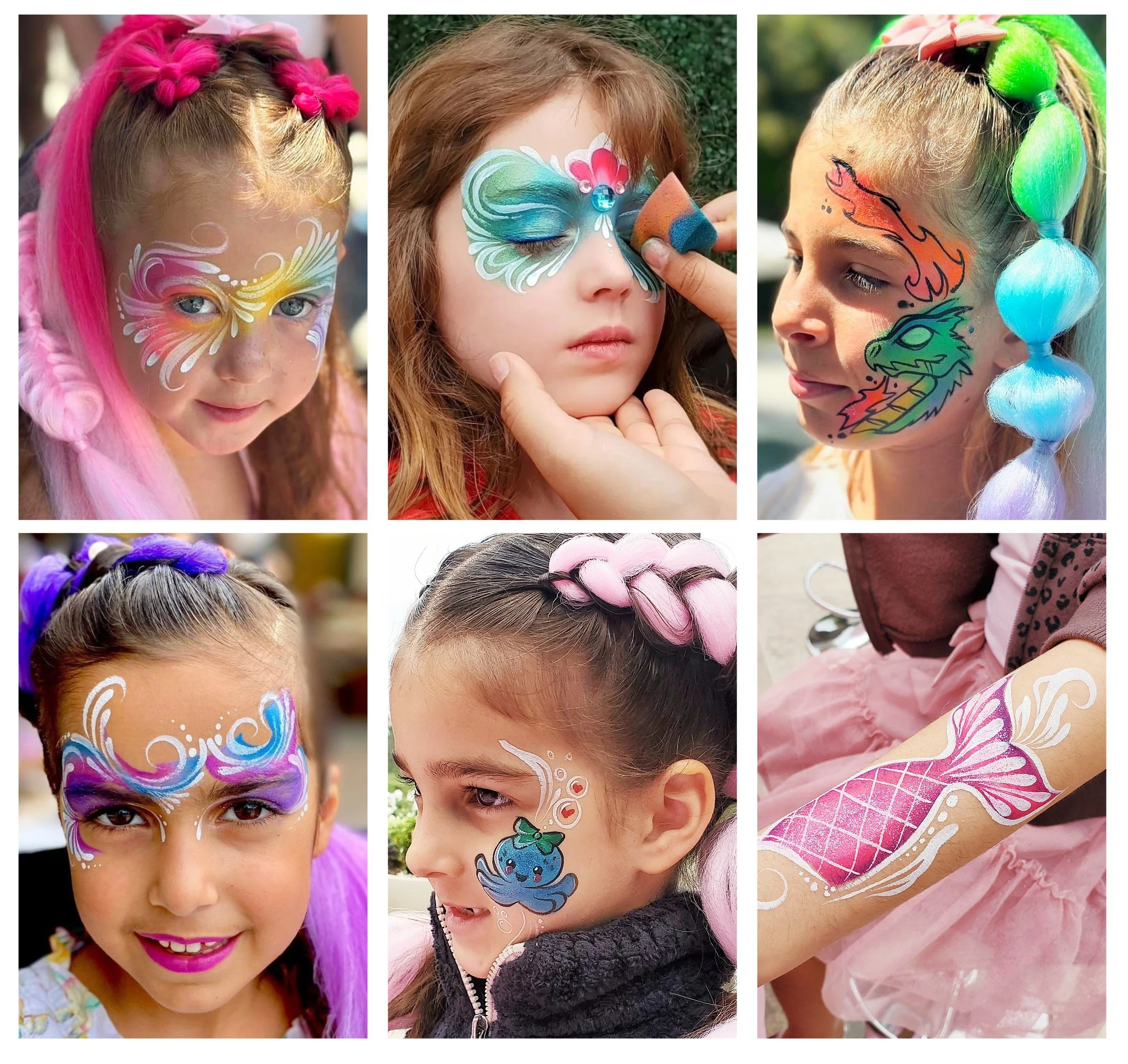 Take face painting to the next level with our unique 3D designs! Perfect for any celebration, but an absolute must for fairy and enchanted-themed parties, this service adds eye-catching dimension with sculpted shapes, shimmering accents, and whimsical details.